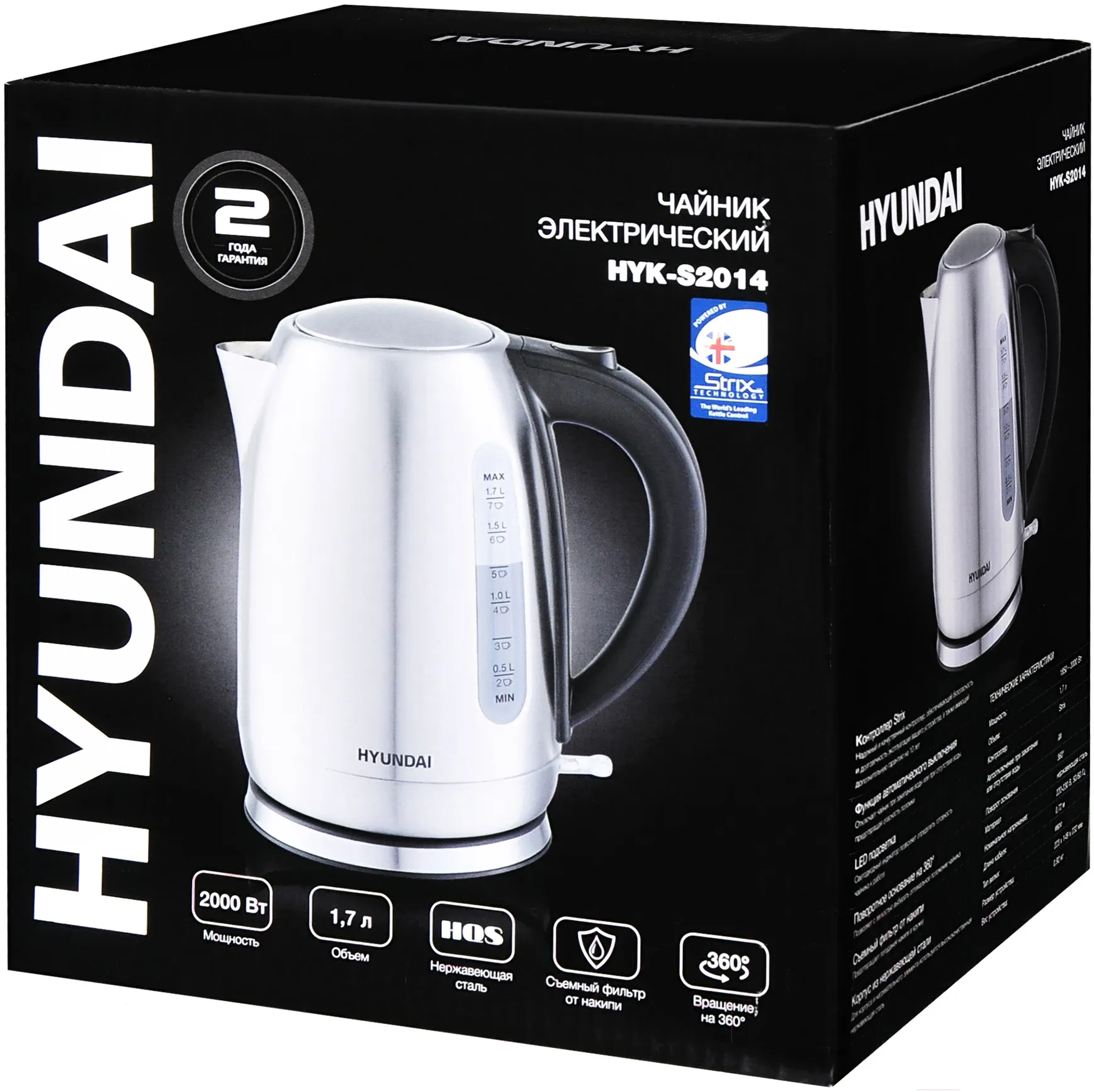 Чайник Hyundai HYK-S2014 представлен в виде уникального бытового прибора, цель использования которого заключается в облегчении жизни хозяйки и всех членов ее семьи. Устройство выполнено в уникальном дизайне, классический серебристый цвет никого не оставит равнодушным. Мощность составляет порядка 2000 Ватт, а объем емкости для воды составляет 1,7 литра. Корпус электрического чайника изготовлен на основе качественной нержавеющей стали, которая значительно продлевает срок эксплуатации бытового прибора. Опционально предусмотрен один температурный режим, есть защита от включения без воды и специальные индикаторы. Подставка позволяет вращать чайник на 360 градусов.