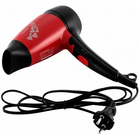 Starwind SHD 7065 – это мощный фен, который бережно относится к волосам во время сушки и укладки. Нагревательный элемент данной модели имеет мощность 1400 Ватт, которая разделена на три режима работы. Они переключаются с помощью четырёхпозиционного ползунка на ручке прибора. Первое положение – фен выключен, второе – он дует воздухом комнатной температуры без нагрева, третье – тёплый воздух, четвёртое – максимальная температура. Насадка на фен Starwind SHD 7065 представляет собой смесь стайлингового концентратора и стандартного рассеивателя для быстрой сушки. Первый служит для работы с локонами и укладки, второй больше подходит для быстрого удаления влаги из шевелюры. Благодаря удачной конструкции прибор совмещает эти две функции и выполняет их превосходно. Поэтому данная модель подойдет и для домашнего применения, и для профессионального парикмахера. Устройство выполнено в эргономичном форм-факторе. Использовать его с комфортом можно и в поездках. Для этого ручка фена складывается, а сетевой шнур (длиной 1.8 метра) закреплен на шарнирном креплении, чтобы уберечь его от истирания в самый неподходящий момент. Кроме того, на конце ручки предусмотрена специальная петля, чтобы хранить прибор в вертикальном подвешенном положении. Эта особенность экономит место в ванной комнате или шкафу. Мобильности Starwind SHD 7065 способствуют также его скромные габариты и небольшой вес. Лаконичная чёрно-красная расцветка данной модели позволит ей вписаться в любой интерьер.