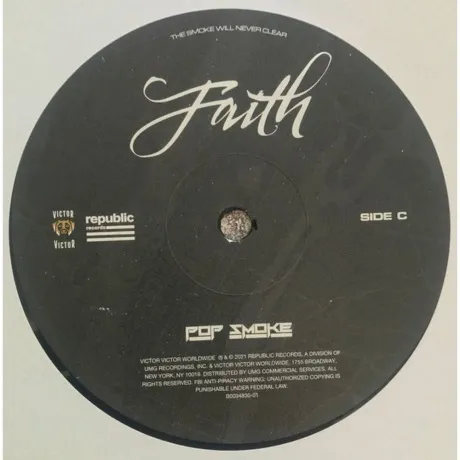 Faith - второй и последний студийного альбома 2021 года американского рэпера Pop Smoke. В записи участвовали такие имениты рэп- и хип-хоп-исполнители как Канье Уэст, Дуа Липа, Крис Браун, Future, Pusha T, Рик Росс, 42 Dugg, 21 Savage, Takeoff, Lil Tjay, Суэй Ли, Фаррелл Уильямс, Кид Кади Куаво и др. Всего за 2021 год было выпущено четыре сингла. Mr. Jones с участием американского рэпера Future в качестве ведущего сингла занял 71-е место в американском Billboard Hot 100 и 70-е место в Billboard Global 200. Demeanor с участием английской певицы Дуа Липы занял 86-е место в Billboard Hot 100 и 14-е место в британском чарте. Woo Baby с участием американского певца Криса Брауна заняла 64-е место в Billboard Hot 100 и четвертое место в чарте Billboard. Rhythmic. Переиздание на двойном черном виниле. Башар Барака Джексон (более известный как Pop Smoke) - американский рэпер и автор песен. Был подписан на Victor Victor Worldwide и Republic Records. В апреле 2019 года выпустил песню Welcome to the Party, это был сингл с его дебютного микстейпа Meet the Woo, выпущенного в июле 2019 года. На Welcome to the Party два ремикса выпустили Ники Минаж и Скепта. В октябре 2019 года Поп выпустил коллаборацию с американским рэпером Лил Тиджеем War. В декабре 2019 года Смоук выпустил записанный при участии американского певца Calboy сингл 100k on a Coupe, а также посотрудничал с рэп-звездой Трэвисом Скоттом. В начале февраля 2020 года выпустил свой второй микстейп Meet the Woo 2.
