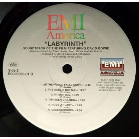 Лицензионное издание, выпущенное на виниле. Содержание альбома: Opening Titles Including Underground, Into The Labyrinth, Magic Dance (edit), Sarah, Chilly Down, Hallucination, As The World Falls Down, The Goblin Battle, Within You, Thirteen OClock, Home At Last, Underground