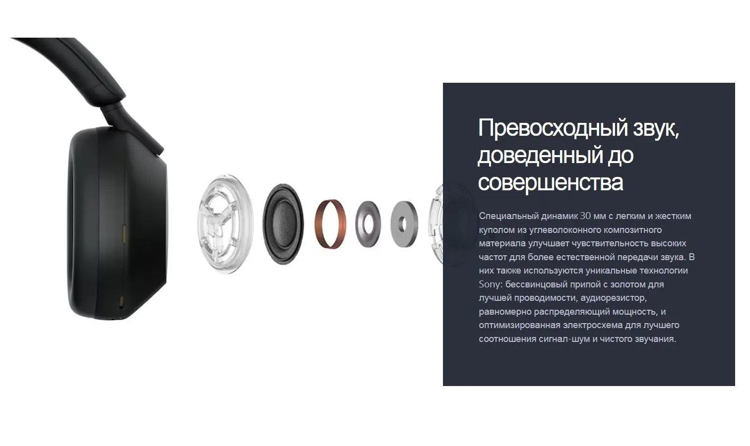 Благодаря 2 процессорам, управляющим 8 микрофонами, автоматической оптимизации шумоподавления в зависимости от условий ношения и окружающей среды, а также специальному динамику, наушники Sony WH-1000XM5 с передовой системой шумоподавления дарят незабываемые ощущения от прослушивания и обеспечивают четкость во время разговора.