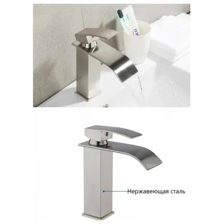 Стильный качественный смеситель. Материал изготовления нержавеющая сталь. Монтаж настольный