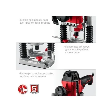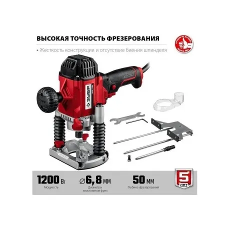 Универсальный фрезер ЗУБР ФМР-1200 – многофункциональное изделие для различных видов фрезерования (продольного, фигурного, по шаблону, по радиусу). Электронная регулировка частоты вращения позволяет выбрать оптимальные настройки под любую задачу. Удлиненная рукоятка – для большей маневренности и возможности работы одной рукой. Яркая подсветка места фрезерования способствует удобству в работе. Быстрая замена щеток облегчает и ускоряет обслуживание.