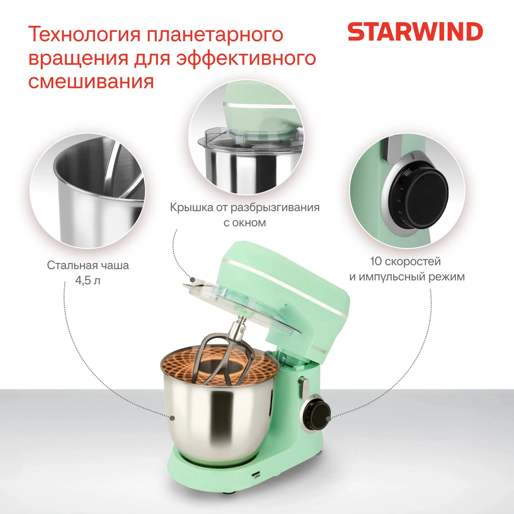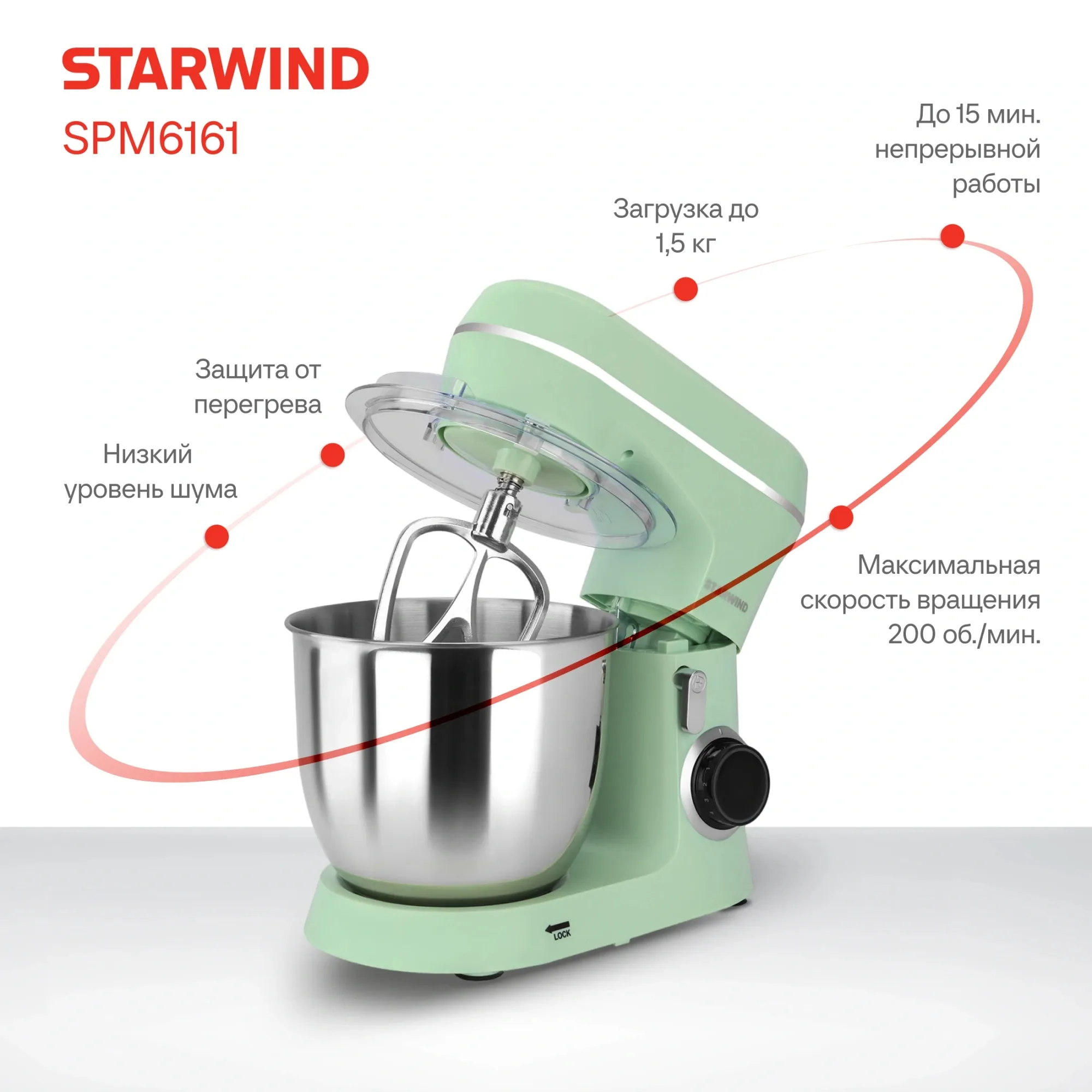 Миксер планетарный Starwind SPM6161 1300Вт мятный - этот товар вы можете купить в нашем интернет-магазине по цене 24921 руб. Цены, фото и описания представлены на карточке товара. Звоните по телефону 8(812)426-98-99 в Воронеже.
