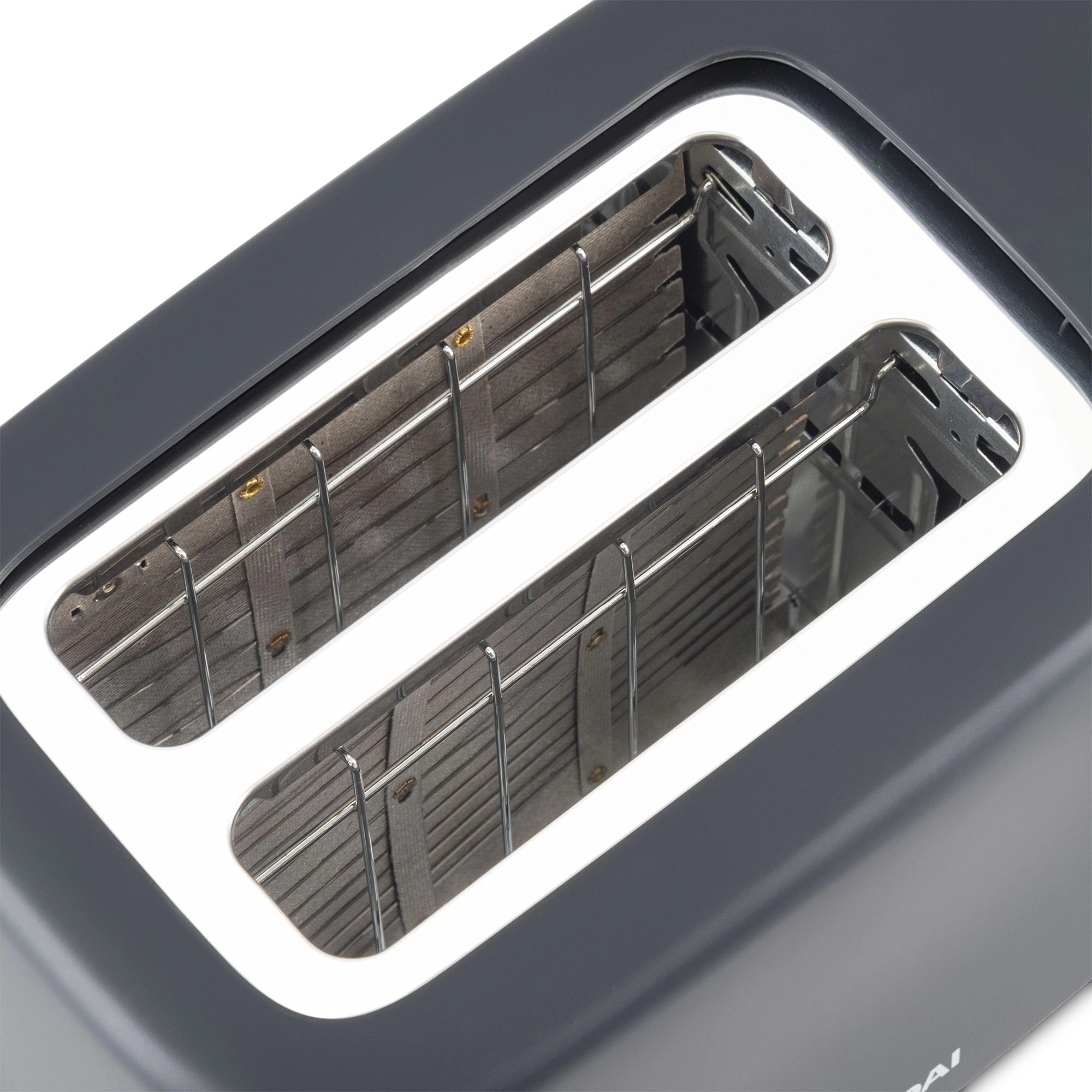 Корпус тостера изготовлен из прочного пластика, что делает его легким и удобным в использовании — вес устройства составляет всего 1,2 кг. Дополнительным преимуществом является съемный поддон для крошек, обеспечивающий легкую чистку и уход за прибором.