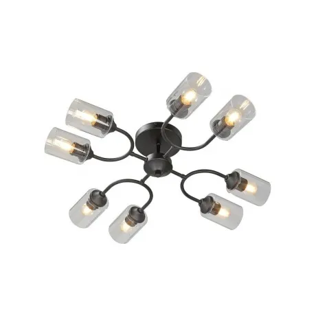 потолочная люстра vitaluce v2822-1/8pl выполнена в стиле арт-деко, оснащена 8 лампами с цоколем e27 и максимальной мощностью 40 вт каждая, корпус черного цвета, плафоны из прозрачного стекла, ширина 61 см, высота 15 см, подходит для освещения помещений до 24 кв.м.