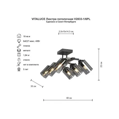 люстра потолочная vitaluce v2833-1/6pl на 6 ламп под цоколь e27, в стиле ар-деко, станет прекрасным дополнением для интерьера, обеспечивая качественное освещение и элегантный дизайн