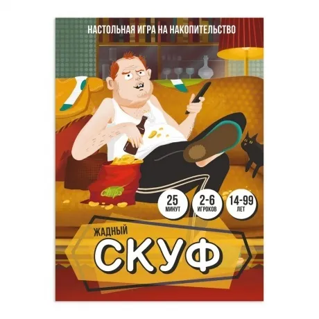 «Жадный скуф» от Нескучных игр — захватывающая настольная игра на расчётливость, накопительство и хитрость для 2–6 игроков, где каждый участник примеряет на себя роль настоящего мастера наживы!