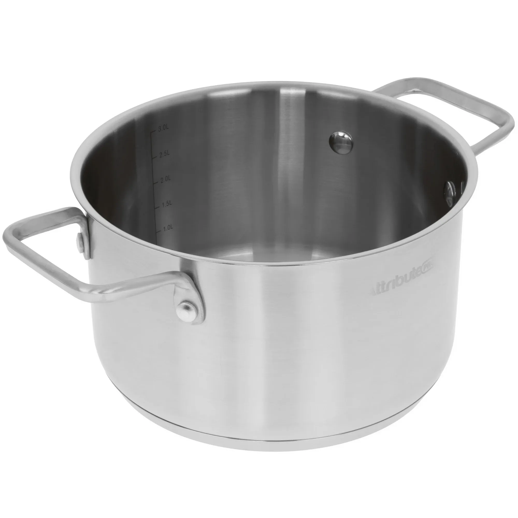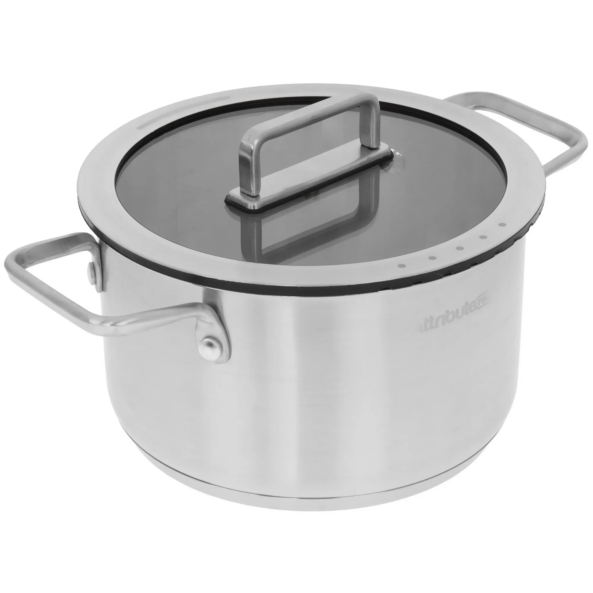Серая кастрюля Attribute ARGENTO подходит для использования на любых типах плит, включая индукционные. Корпус устройства выполнен из нержавеющей стали с толщиной стенок 0.6 мм, которая не боится коррозии, хорошо держит тепло и подходит для мытья в посудомоечной машине. Две ручки модели также выполнены из нержавеющей стали. Кастрюля Attribute ARGENTO объемом 3.4 л обладает диаметром 20 см. Модель укомплектована крышкой из жаропрочного стекла с силиконовым ободком для плотного прилегания к поверхности кастрюли.