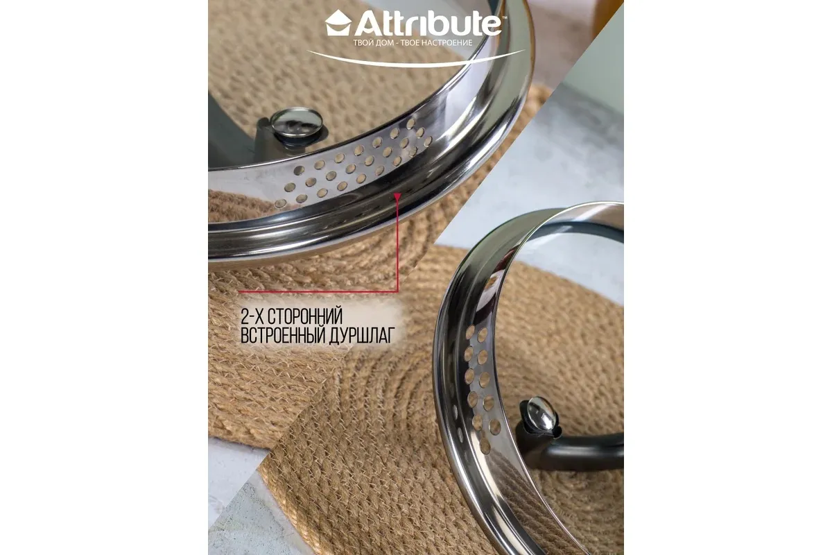 Стеклянная жаропрочная крышка с сливными отверстиями (дуршлаг) для удобного слива жидкости.