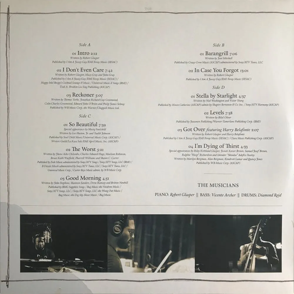 The Robert Glasper Trio*–I Don't Even Care, The Robert Glasper Trio*–Reckoner, The Robert Glasper Trio*–Barangrill, The Robert Glasper Trio*–In Case You Forgot, The Robert Glasper Trio* Speacial Appearance By Musiq Soulchild–So Beautiful, The Robert Glasper Trio*–The Worst, The Robert Glasper Trio*–Good Morning, The Robert Glasper Trio*–Stella By Starlight, The Robert Glasper Trio*–Levels, The Robert Glasper Trio* Featuring Harry Belafonte–Got Over, The Robert Glasper Trio* Special Appearances B
